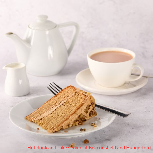 Your choice of hot drink: breakfast tea, latte, cappuccino, americano, flat white or hot chocolate. Plus one of the following options: triple chocolate cake (588kcal), coffee and walnut cake VI (550 kcal) and Persian lemon cake VI (502kcal).